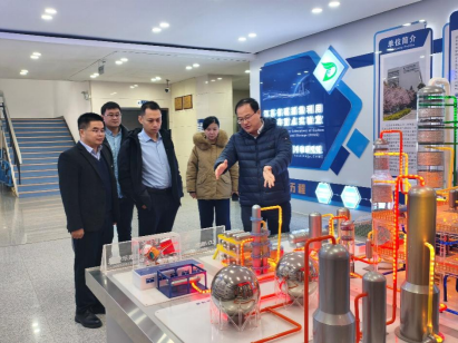 报告会结束后,孙剑来到我院,并在曹景沛院长的带领下,参观了各个实验室。曹景沛向孙剑介绍了研究院及省重点实验室在碳中和技术、能源清洁高效利用等领域取得的研究成果。他指出大连化物所在能源化工、新能源领域技术优势显著,希望双方在先进技术研发、应用转化、复合型人才培养等多方面深化合作交流,相互学习、协同创新,为我国能源化工产业高质量发展贡献力量。孙剑对我院取得的科研成果给予了高度赞赏,对老师们的研究内容表现出浓厚的兴趣。